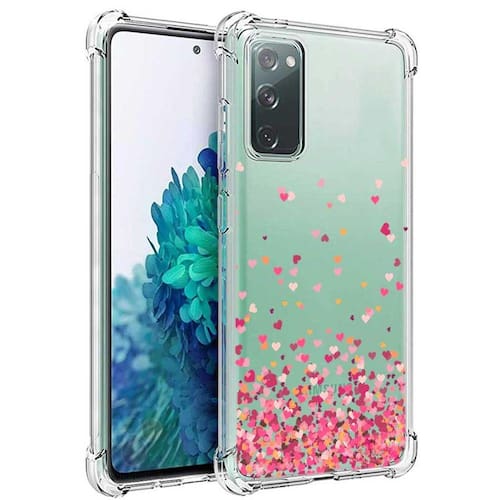 1x Capa Anti Queda transparente, bordas reforçadas com desenho de chuva de corações para GALAXY S20 Fe