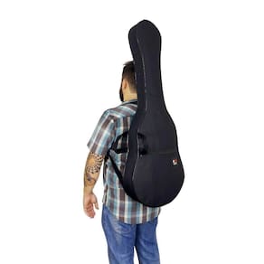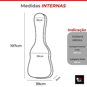 Capa para guitarra EXTRA LUXO - BONGA100% ACOLCHOADAConfeccionadas em nylon 600 emborrachado de alta resistência e zíper de 8mm, as bags luxo, além de impermeáveis e ultra resistentes, possuem espuma interna nas tampas e laterais, garantindo proteção e melhor acomodação do seu instrumento e também maior conforto para você ao transportá-lo nas costas.Com abertura total do zíper, guardar o instrumento ficou mais fácil e seguro, evitando possíveis pancadas e arranhões indesejados. Para maior facilidade no transporte, nossas bags possuem alças de mão e de mochila com regulagem de altura, possibilitando pessoas de alturas diferentes transportarem com total praticidade e conforto, além de bolso frontal com zíper, ideal para cabos, partituras, etc. Informações adicionaisConteúdo da embalagem: 1 bag Extra-Luxo para guitarraMedidas: 107 x 39 x 8cmCor: pretaBolso: SimAlça de mão: SimAlça de mochila regulável: SimImpermeável: SimAcolchoada: Sim. Possui espuma de alta densidade na tampa, encosto e lateraisGarantia: 90 dias contra defeito de fabricaçãoMarca: BongaBongaProteção no seu ritmo. Música, muito mais do que som e acordes. Música é crença. É filosofia. É um caminho sem volta. Música é eterna, é vida, assim como o prazer de tocar.Bonga é a decisão certa para proteger, preservar e valorizar o seu instrumento, seja ele de corda, teclas, sopro ou percussão. Bags e semi cases feitos com materiais de alta resistência, durabilidade e costuras reforçadas, garantindo total praticidade e segurança no manuseio e transporte.Para todos os ritmos, Bonga