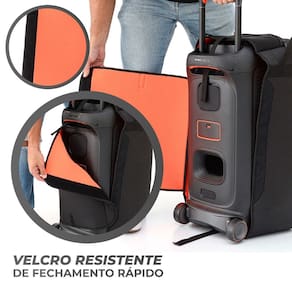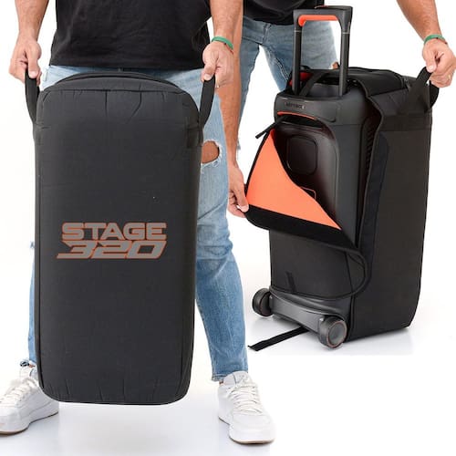 E como estamos sempre buscando inovações, apresentamos a nova e completa Capa Bag para J-BL Partybox Stage 320, com construção detalhada para destacar a beleza da sua caixa de som. É muito mais do que uma simples capa, é uma solução que permite usar a caixa com todas as proteções necessárias ao transportá-la.