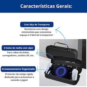Proteção a todo momento: Estando em casa, ou levando seu ps portal para qualquer ambiente, com essa bag você sempre manterá seu console impecável e protegido de qualquer queda acidental