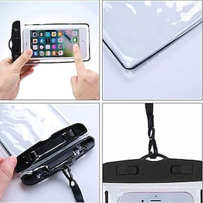 Capa Impermeável para telefones móveis, câmeras e demais equipamentos eletrônicos. Ideal para assegurar a integridade de seus aparelhos. Você poderá tirar fotos em piscinas, pescarias, passeios de barco, jetski, trilhas, caminhadas, acampamentos e no mar. Tudo isto sem risco para seu equipamento. Compatível com telefone móvel, GPS, câmeras fotográficas, MP3 etc. Possui 2 travas de segurança contra vazamento acidental. Alça de segurança.