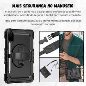 Capa borda proteção total para samsung a11+ 11 poleadas x230 Cor: preto Proteção completa e design inteligente para o seu tablet samsung a11+ x230 x236 2025 11 polegadas A capa anti impacto com película embutida, alça giratória e suporte para caneta oferece segurança total em todos os lados - frente, verso e cantos. Projetada para resistir a quedas, impactos e arranhões, ela combina camadas reforçadas de silicone e policarbonato rígido, garantindo máxima durabilidade. A película frontal embutida protege a tela contra riscos sem prejudicar a sensibilidade do toque. A alça giratória 360 proporciona conforto e firmeza no manuseio - perfeita para apresentações, aulas e uso prolongado. Já o suporte para caneta mantém seu acessório sempre à mão, tornando o conjunto ainda mais prático. Ideal para quem busca proteção, conforto e funcionalidade em um único produto. ------------------ ------------------ É compatível com qual modelo R: compatível exclusivamente com o tablet samsung a11+ x230 x236 2025 11 polegadas. A capa tem película integrada R: sim, a película é embutida na parte frontal, protegendo a tela contra riscos e sujeira. A alça é ajustável e giratória R: sim, a alça traseira gira 360 e permite ajustar a posição de uso conforme a necessidade. Possui suporte para caneta R: sim, há um suporte lateral integrado que mantém a caneta sempre acessível. A capa é resistente a quedas R: sim, sua estrutura tripla silicone + policarbonato + película oferece alta absorção de impacto. É fácil de instalar R: sim, a instalação é simples, bastando encaixar o tablet nas travas internas da capa. ------------------ Especificações ------------------ Modelo: capa anti impacto com película embutida e alça Material: silicone emborrachado + policarbonato rígido Estrutura: tripla frontal, traseira e cantos reforçados Película: embutida, sensível ao toque Compatibilidade: tablet samsung a11+ x230 x236 2025 11 polegadas. ------------------ Conteúdo ------------------ 1x capa anti impacto com película embutida e suporte de caneta integrado. 1x alça giratória ajustável Anúncio referente a capa Acessórios que ambientam as fotos não inclusos. ------------------ Apresentação: ------------------ - qualidade garantida. - atendimento qualificado. - enviamos para todo o brasil. - compra garantida. - despachamos em até 1 dia útil após confirmação do pagamento Garantimos a devolução por arrependimento em até 7 dias, após o recebimento e de 15 dias contra defeitos de fabricação.