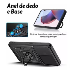 A Capinha Tem Proteção para camera, quando nao tiver usando Com suporte para Suporte veicular Magnetico Com Suporte Anel 360 graus para deixar o celular de forma adequada para assistir. Fácil Acesso A Todas Entradas Do Aparelho, Sem Ser Necessário A Remoção Da Capa Design Moderno, Protege Seu Telefone De Sujeira, Riscos E Possíveis Danos Causados Por Quedas Proteçã total contra impactos.