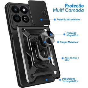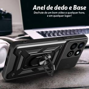 Capa Capinha Case para Honor Play 60 Plus - Protetora Resistente Anti Impacto Queda Armadura Militar Cor:Preto Capa Protetora Blindada com Suporte e Tampa de Lente - Alta Proteção e Funcionalidade