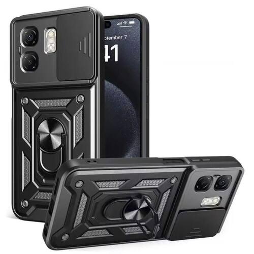 Capa Capinha Case para Infinix Hot 50i - Protetora Resistente Anti Impacto Queda Armadura Militar Cor:Preto Capa Protetora Blindada com Suporte e Tampa de Lente - Alta Proteção e Funcionalidade