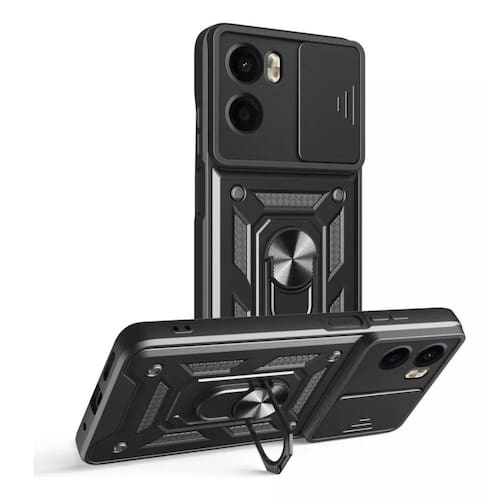 Capa Capinha Case para Motorola Moto E15 - Protetora Resistente Anti Impacto Queda Armadura Militar Cor:Preto Capa Protetora Blindada com Suporte e Tampa de Lente - Alta Proteção e Funcionalidade