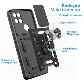 Capa capinha case para realme c21y - protetora resistente anti impacto queda armadura militar cor:preto - alta proteção - ótimo acabamento com alto relevo na parte que protege a câmera;