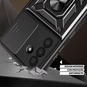 Alta proteção com alto relevo na parte que protege a câmera; proteção anti impacto de dupla camada; anel de dedo e metal imbutido para aderir em imã; anel ajustável para função de base; slide cover para maior proteção das câmeras e maior privacidade; não suporta carregamento por indução.Características