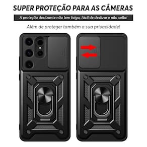 Capa capinha case para samsung galaxy s24 ultra - protetora resistente anti impacto queda armadura militar Cor: preto - alta proteção - ótimo acabamento com alto relevo na parte que protege a câmera;