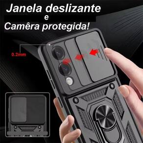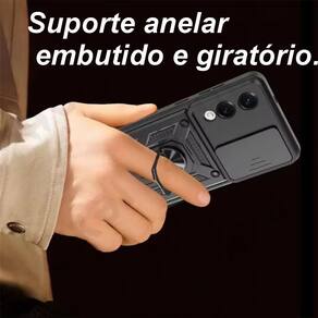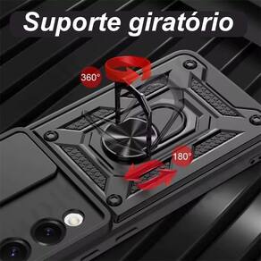 Capa protetora blindada com suporte giratório e tampa deslizante para lente.Acabamento do material