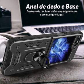 Capa capinha case para samsung galaxy z flip 6 - protetora resistente anti impacto queda armadura militar cor:preto - alta proteção - ótimo acabamento com alto relevo na parte que protege a câmera;
