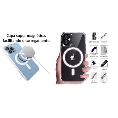 Essa capinha permite carregamento por indução e segurança (MagSafe = magnetismo seguro) e em alta velocidade, além disso tem design antichoque (com proteção interna extra nas bordas). Capa transparente e com design moderno, possibilitando que seja vísivel a cor do seu celular e os detalhes do mesmo, valorizando e imprimindo status Esse anúncio foi criado para vender kits do iPhone 14, iPhone 14 Pro, iPhone 14 Plus e iPhone 14 Pro Max . ITENS INCLUSOS NO KIT: 1 (uma) capinha , transparente e antichoque,