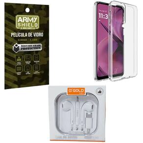 Capa Capinha Transparente Para Moto G75 + Fone Tipo C + Película de Vidro 3D Armyshield