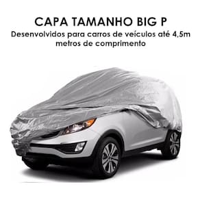 Capa De Carro Alto Suv Big P Impermeável Com Forro Central Cinza Pequena Capa automotiva com forro tamanho big p - 1.4x4,5 mts Desenvolvidos para carros de veículos até 4,5 metros de comprimento. Medidas: Largura: 1.4 metros Altura: 1.4 cm podendo variar conforme a largura do veículo Comprimento: 4,5 metros Compatível: Caso não saiba o comprimento pode comparar com os seguintes modelos: - chevrolet tracker - chevrolet meriva - citroen xsara picasso - volkswagem crossfox - kia sportage - hyundai tucson - hyundai ix35 - ford ecosport - renault scenic - fiat idea - jeep renegade Como colocar sua capa: 1 - coloque a capa com o carro limpo, seco e frio com antenas e acessórios recolhidos. Ao desembalar a capa desenrole no sentido do comprimento, a etiqueta vai ficar localizada na frente do veículo, e a arte interna da capa fica voltada para baixo 2 - centralize e desfaça as dobras ao longo das laterais, até cobrir os retrovisores, puxe-a para barra eté envolver o para-choque dianteiro. 3 - faça o mesmo co o para-choque traseira. Finalize a operação ajustando sua descida nas laterais e centralizando-a. Especificações técnicas: - desenvolvidos para carros de grande comprimento e largura, porém não muita altura. - fabricadas em polietileno trançado peva - proteção u.V reflete luz solar - proteção com forro interna apena na parte central de polipropileno anti-risco - sistema interno de ventilação, o ar circula embaixo da capa evitando umidade. - anti-mofo - leve e resistente Manutenção e cuidados especiais estão impressos na etiqueta fixada na parte interna da capa. Atenção: a capa não poderá ser Utilizado quando: a pintura do veículo apresentar falta de brilho, falta de verniz, manchas e fundo aparente. Caso a pintura se encontrem qualquer destas condições citadas poderá provocar manchas esbranquiçadas em quase 100% do veículo. Obs: o fabricante se isenta de qualquer ônus se o usuário descumprir estas orientações. Atenção - 3 meses A empresa não se responsabiliza pela má instalação do produto. Procure por um profissional especializado Marca: Não Informado
