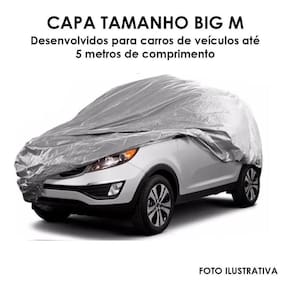 Capa De Carro Pickup Big M Impermeável Com Forro Central Cinza Media Capa automotiva com forro tamanho big m - 1.4x5 mtsDesenvolvidos para carros de até 5 metros de comprimento, com lateral alta.Medidas:Largura: 1.4 metrosAltura: 1.8 cm podendo variar conforme a largura do veículo Comprimento: 5 metrosCompatível:Caso não saiba o comprimento pode comparar com os seguintes modelos:- chevrolet blazer- chevrolet captiva- chevrolet s-10- toyota sw4- hyundai santa fé- ford edge- honda cr-v- fiat toroComo colocar sua capa1 - coloque a capa com o carro limpo, seco e frio com antenas e acessórios recolhidos. Ao desembalar a capa desenrole no sentido do comprimento, a etiqueta vai ficar localizada na frente do veículo, e a arte interna da capa fica voltada para baixo2 - centralize e desfaça as dobras ao longo das laterais, até cobrir os retrovisores, puxe-a para barra eté envolver o para-choque dianteiro.3 - faça o mesmo co o para-choque traseira. Finalize a operação ajustando sua descida nas laterais e centralizando-a.Especificações técnicas:- desenvolvidos para carros de grande comprimento e largura, porém não muita altura.- fabricadas em polietileno trançado peva - proteção u.V reflete luz solar- proteção com forro interna apena na parte central de polipropileno anti-risco- sistema interno de ventilação, o ar circula embaixo da capa evitando umidade.- anti-mofo- leve e resistenteManutenção e cuidados especiais estão impressos na etiqueta fixada na parte interna da capa.Atenção: a capa não poderá ser usada quando: a pintura do veículo apresentar falta de brilho, falta de verniz, manchas e fundo aparente. Caso a pintura se encontrem qualquer destas condições citadas poderá provocar manchas esbranquiçadas em quase 100% do veículo.Obs: o fabricante se isenta de qualquer ônus se o usuário descumprir estas orientações.AtençãoGarantia - 3 mesesA empresa não se responsabiliza pela má instalação do produto.Procure por um profissional especializadoAtenção: as compras realizadas em nome de pessoa jurídica estão sujeitas à cobrança de icms, conforme protocolo icms 41, de 4 de abril de 2008. Caso você tenha dúvidas sobre o percentual a ser aplicado, consulte a cláusula segunda, 1 do referido protocolo.