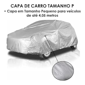 Capa Carro Proteção Tamanho P Impermeável Com Forro Central Cinza Pequena Capa carro universal impermeável tamanho p A capa para carro é essencial para quem tem mais de um carro na garagem ou tem apenas um carro e só usa nos fins de semana, já que o trânsito das cidades está a cada dia mais caótico. Com a capa automotiva seu carro poderá ficar protegido dos danos da chuva, chuva ácida, sol, poeira, neblina, riscos e arranhões. A capa com forro inclui uma proteção extra contra o sol e chuva, podendo ser Utilizado em garagem coberta ou descoberta. As capas automotivas são fabricadas em polietileno trançado peva que possui proteção u.V que é um material térmico e tem a cor prata que ajuda a dissipar o calor, elas tem proteção interna de polipropileno que possui um tratamento anti-risco, ideais para pessoas que moram em apartamentos, condomínios ou deixam o carro em estacionamentos de terceiros que são lugares com maior índice de por atos de vandalismo. As capas para carro possuem sistema interno de ventilação que faz com que o ar circule embaixo da capa, para evitar que fique umidade entre a capa e a pintura do carro, são super resistente e anti-mofo, leves de fácil manuseio e transporte, pois qualquer pessoa pode colocar e retirar a capa a qualquer hora sem nenhum esforço. Fabricado em polietileno e forro em tnt polipropileno. Cor prata. Especificações técnicas Tamanho: p Comprimento: 4m Largura: 3,75m Conteúdo da embalagem 1 capa para carro universal tamanho pequeno. 1 manual de instruções. Aplicação Capa em tamanho pequeno para veículos de até 4,05 metros Modelos de exemplo: Montadora: audi Modelo: a1. Montadora: citron Modelo: c3, c3 xtr, novo c3, ds3. Montadora: fiat Modelo: uno mile, novo uno, palio, novo palio, fiat 500. Montadora: ford Modelo: fiesta hatch, ká, escort 87 - 92, new fiesta. Montadora: nissan Modelo: march. Montadora: kia Modelo: picanto. Montadora: peugeot Modelo: 206, 207, 208. Montadora: renault Modelo: twingo, clio. Montadora: volkswagen Modelo: gol, fox, up. Montadora: gm chevrolet Modelo: celta, corsa hatch, onix, sonic. Montadora: hyundai Modelo: hb20, hb20x. Montadora: toyota Modelo: etios. Montadora: chery Modelo: , s-18, face. Montadora: jac Modelo: j2, j3, j3s. Montadora: lifan Modelo: 320. Montadora: effa Modelo: m100. Manutenção e cuidados especiais estão impressos na etiqueta fixada na parte interna da embalagem da capa. Atenção: a capa não poderá ser Utilizado quando: a pintura do carro apresentar falta de brilho, falta de verniz, manchas e fundo aparente. Caso a pintura se encontrem qualquer destas condições citadas poderá provocar manchas esbranquiçadas. Obs: o fabricante se isenta de qualquer dano se o usuário descumprir estas orientações. - 3 meses A empresa não se responsabiliza pela má instalação do produto. Procure por um especializado