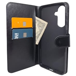 Possui duas divisórias para cartões; Possui divisória para guardar notas dobradas; Fechamento Magnético; Designer elegante; Oferece estabilidade ao manusear o aparelho; Parte interna produzida em TPU; Confeccionada em material sintético; Encaixe perfeito no celular, com todas as entradas e saídas do seu aparelho.Características