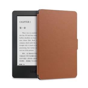 Capa case couro sintético magnética auto sleep kindle paperwhite 1/2/3 - dp75sdi / ey21 + caneta touch cor: marrom atenção