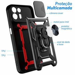 A capa é compatível com o Motorola Moto Edge 20 Lite e possui encaixe perfeito, garantindo o acesso a todas as funções e botões do aparelho. Ela também possui um slide cover para maior proteção das câmeras e maior privacidade.