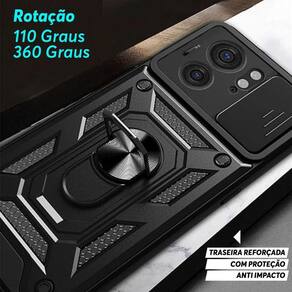 Especificações técnicas: - Material: TPU Poliuretano Termoplástico - Cor: Preto - Compatibilidade: Motorola Moto Edge 40 - Funções: Proteção contra impactos, anel de dedo, metal embutido para aderir em imã, base ajustável, encaixe perfeito, slide cover para proteção das câmeras e privacidade.
