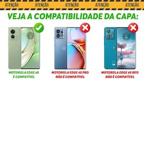 1. Essa capa é compatível com o Motorola Moto Edge 40? Sim, essa capa é compatível apenas com o Motorola Moto Edge 40.