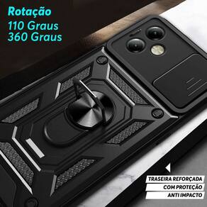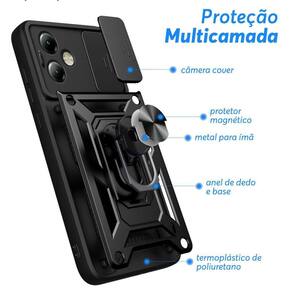 Proteção anti impacto de dupla camada, anel de dedo ajustável e slide cover para câmera.Acabamento do material