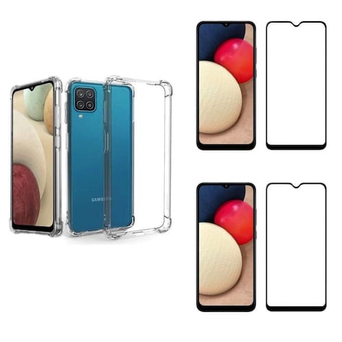 Capa Case Anti Impacto Samsung Galaxy A12 + 2 Películas de Vidro 3D Tela Toda Kit Capa reforçada anti impacto transparente + 2 Películas protetoras de vidro 3D