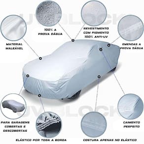 Atenção: a capa uv-block possui padrão alto de qualidade não se comparando a capas comuns do mercado, o seu segredo está no polietileno na sua fabricação que proporciona muito mais proteção ao seu veículo e mais tempo durável. Capa uv-block sem forro g Elas são especificamente desenhadas para lhe oferecer a mais avançada proteção contra os seguintes notáveis inimigos: raios u.V, sujeira, sereno, maresia, dejetos de pássaros, folhas, resíduos de árvores, fuligem, poluentes e outras partículas que podem danificar a superfície do seu veículo. Confeccionada com filme composto de 100% polietileno disposto em 02 camadas e aditivada com anti-oxidante e anti u.V. A sua coloração prateada proporciona excelente reflexo da luz solar funcionando como espelho frente aos raios solares. Material: capa polietileno uv-block Forração: sem forro Aplicação tamanho g: carros de 4,51 até 4,90 x 1,36 m comprimento x altura Exemplos de aplicação: tamanho g : audi a4, a5, q3, r8 , bmw serie 3 , chevrolet cobalt, cruze hatch, cruze sedan, vectra hatch, vectra sedan, zafira , chrysler pt cuiser , citroen c4 lounge, c4 pallas, ds5 , fiat linea, marea, marea weekend, strada cab. Dupla, strada estendida , ford focus, focus sedan , honda new civic, civic, city , hyundai elantra , jac motors j5 , kia cerato , lifan 620 , mitsubishi lancer , nissan sentra, tiida sedan, versa , peugeot 307 sedan, 408 , renault fluence, megane , subaru impreza, impreza wrx, legacy, xv , toyota corolla, prius , volkswagen jetta, santana, saveiro Especificações: - não risca a pintura do carro - 100% impermeável - utilização em garagens cobertas e descobertas - protege seu veículo do sol, chuva e poeira - máxima proteção contra os raios u.V. - protege o carro por completo - fixação firme com elástico nas bordas - fácil instalação - a marca pode variar conforme , porém qualquer marca excelentíssima qualidade uv-block padrão de qualidade. Pesos e medidas aproximados medidas da embalagem: 18 x 28 x 33 cm altura x largura x comprimento peso bruto: 1,13 kg Itens inclusos: 1 capa