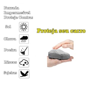 Proteja seu carro com a nova capa zna bezz. A capa é forrada com tecido e impermeável, desenvolvida exclusivamente para proteção do seu automóvel, protegendo seu carro de sol, chuva, riscos, poeiras, dejetos de animais.