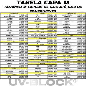 Atenção: a capa uv-block possui padrão alto de qualidade não se comparando a capas comuns do mercado, o seu segredo está no polietileno na sua fabricação que proporciona muito mais proteção ao seu veículo e mais tempo durável. Capa uv-block sem forro m Elas são especificamente desenhadas para lhe oferecer a mais avançada proteção contra os seguintes notáveis inimigos: raios u.V, sujeira, sereno, maresia, dejetos de pássaros, folhas, resíduos de árvores, fuligem, poluentes e outras partículas que podem danificar a superfície do seu veículo. Confeccionada com filme composto de 100% polietileno disposto em 02 camadas e aditivada com anti-oxidante e anti u.V. A sua coloração prateada proporciona excelente reflexo da luz solar funcionando como espelho frente aos raios solares. Material: capa polietileno uv-block Forração: Sem forro Aplicação Tamanho M: Carros de 4,05 até 4,50 x 1,36 m Comprimento x Altura Exemplos de aplicação: tamanho M : Audi A3 Hatch , Bmw Serie 1 , Chery Celer Hatch, Celer Sedan, Cielo , Chevrolet Agile, Astra Hatch, Corsa Sedan, Kadett, Ipanema, Prisma, Sonic Sedan , Citroen C3 , Ds4 , Fiat Bravo, Brava, Grand Siena, Idea, Punto, Siena, Stilo , Ford Escort, Fiesta Sedan, Ka Sedan, New Fiesta Sedan , Honda Fit , Hyundai HB20s, I30, Veloster , Jac Motors J3 Turing, Soul , Nissan Tiida Hatch , Peugeot 306 Hatch, 306 Sedan, 307 Hatch , Renault Clio Sedan, Logan Sedan, Sandero , Suzuki Jimmy, SX4 , Toyota Etios Sedan , Volkswagen Bora, Crossfox, Golf, Logus, New Beetle, Parati, Polo Sedan, Spacefox, Voyage , Volvo C30, V40 Especificações: - não risca a pintura do carro - 100% impermeável - utilização em garagens cobertas e descobertas - protege seu veículo do sol, chuva e poeira - máxima proteção contra os raios u.V. - protege o carro por completo - fixação firme com elástico nas bordas - fácil instalação - a marca pode variar conforme , porém qualquer marca excelentíssima qualidade uv-block padrão de qualidade. Pesos e medidas aproximados medidas da embalagem: 18 x 28 x 33 cm altura x largura x comprimento peso bruto: 1,13 kg Itens inclusos: 1 capa