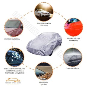 A capa é 100% impermeável, ideal para situações onde o carro necessite ficar exposto ao clima.