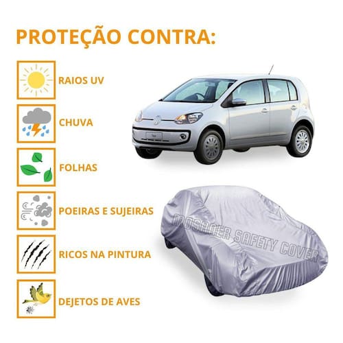 A capa de cobrir carro vw up mosaner safety cover possui ótima qualidade que proteje seu veículo de diversas formas, como contra chuvas, sujeira, poeira, sereno, dejetos de aves, seiva e resíduos de árvores como folhas, fuligem, maresia, poluentes, respingos de tinta, arranhões superficiais e raios solares.