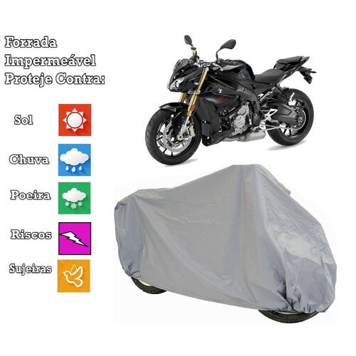Capa cobrir moto bmw s1000r 100 % impermeável e 100% forrada Proteja sua moto com a nova capa bezzter protection. A capa é forrada com tecido e impermeável, desenvolvida exclusivamente para proteção do seu automóvel, protegendo seu carro de sol, chuva, riscos, poeiras, dejetos de animais. A capa motocicletas impermeável é fabricada polietileno que ajuda a manter a qualidade e durabilidade do seu veículo protegendo de qualquer chuva, sujeira ou poeira externa. Capa no tamanho adequado a moto que está no título do anuncio. Benefícios e descrição da capa: - protege a pintura contra riscos. - capa 100% impermeável. - adequada para garagens descobertas ou cobertas. - protege sua moto por inteira. - instalação prática e fácil. - material 100% polietileno - material do forro 100% tnt, forro total. - elástico interno para melhor fixação. - proteção contra raios uv, chuva, poeira, sujeiras, animais. - reflete luz solar. - leve e resistente. Como colocar sua capa 1 - coloque a capa com a moto limpa, seca e fria com antenas e acessórios recolhidos. Ao desembalar a capa desenrole no sentido do comprimento, a etiqueta vai ficar localizada na frente da moto, e a arte interna da capa fica voltada para baixo 2 - centralize e desfaça as dobras ao longo das laterais, até cobrir, puxe-a para barra até envolver o todo da moto. 3 - faça o mesmo com a parte traseira. Finalize a operação ajustando sua descida nas laterais e centralizando-a. Com Com Marca: Não Informado Ean: 7896840110107