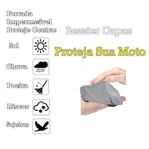 - protege a pintura contra riscos. - capa 100% impermeável. - adequada para garagens descobertas ou cobertas. - protege sua moto por inteira. - instalação prática e fácil. - material 100% polietileno - material do forro 100% tnt, forro total. - elástico interno para melhor fixação. - proteção contra raios uv, chuva, poeira, sujeiras, animais. - reflete luz solar. - leve e resistente. Como colocar sua capa