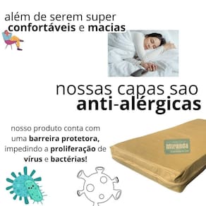 No caso de pessoas alérgicas esta capa ajudará a evitar poeira, ácaros fungos, bactérias e muito mais, pois para sua higienização basta utilizar um pano úmido com detergente neutro e conseguirá controlar todos estes fatores alergênicos.