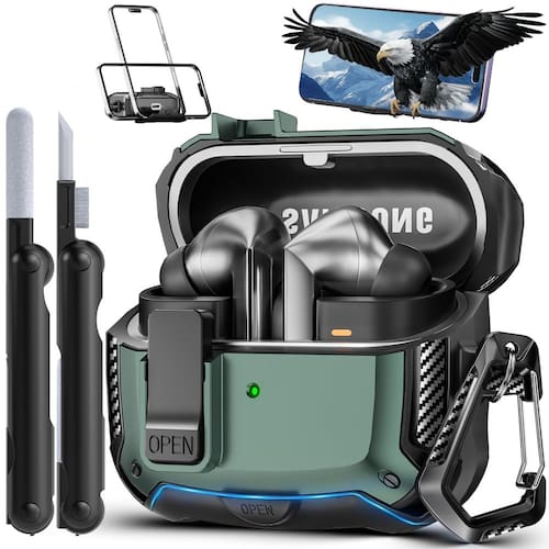 Dispositivo compatível: esta capa com clipe de bloqueio seguro para Samsung Galaxy Buds3/Galaxy Buds3 Pro (2024) capa de carregamento. - Dispositivo compatível: esta capa com clipe de bloqueio seguro para Samsung Galaxy Buds3/Galaxy Buds3 Pro (2024) capa de carregamento. - ?Design inovador? Novo design de trava de segurança, com a função de bloqueio + suporte de telefone, abra a trava e você pode ter um suporte de telefone para assistir ao seu telefone, conversar por vídeo ou assistir a filmes. Capa com trava de tampa para fechamento completo. É muito prático. - ?Design de bloqueio seguro atualizado?Possui travas seguras. Para que elas se fechem facilmente, a trava oculta mantém sua capa sempre fechada firmemente, basta pressionar o botão "Abrir", fácil de operar, design mais seguro e prático. - Design de proteção total: é feita de TPU + policarbonato, capa rígida de TPU e textura de fibra de carbono, projetada para proteger totalmente. - ?Caneta de limpeza 3 em 1?: a caneta de limpeza com ponta de caneta, escova macia e a escova flocagem de alta densidade, pode ajudar você a remover poeira e sujeira de seus fones de ouvido, sempre mantenha seu Samsung Galaxy Buds 3 como novo. - ?O pacote inclui?: 1 capa compatível com Samsung Galaxy Buds3/Galaxy Buds3 Pro (2024), 1 caneta de limpeza, 1 chaveiro.