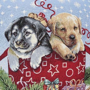 Capa de almofada decorativa Cachorrinhos de Natal, 45x45cm, feita em Gobelino de alta qualidade importado da Europa. Possui abertura com zíper invisível. Deixa ambiente da sua casa encantador com nossa coleção das almofadas Natalinas