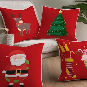 Capa De Almofada De Natal Com Zíper 43cm X 43cm Kit 04 Peças Natal 03