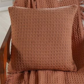 Capa De Almofada Decorativa Waffle 100% Algodão 45x45cm Terracota