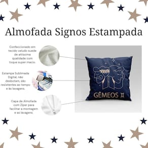 Capa De Almofada Estampada Signos Do Zodíaco Em Veludo Suede 45cm X 45cm - Decoração Astrologia Horóscopo Cor Gêmeos