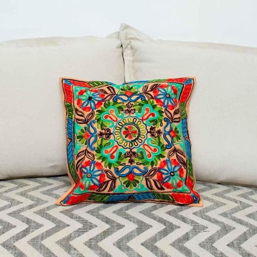 Capa de Almofada Indiana Bordada 100% Algodão 45x45cm Capa de Almofada Indiana Bordada 100% Algodão 45x45cm