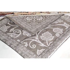 Linda capa de almofada em tecido jacquard rústico dupla face, nas cores caqui e cru, com detalhes em desenhos de flores e folhas .