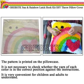 1 - Agora adotamos materiais melhores sem qualquer odor. - Criativo e divertido: comece um novo hobby com nossa capa de travesseiro de kit de gancho de trinco. É a atividade perfeita para viagens e você pode levá-la com você para qualquer lugar. Travesseiro: 40,6 x 40,6 cm. - Fácil de usar: com instruções em vídeo. A estampa é impressa na fronha. Não é necessário verificar se o fio de cada cor está na posição correta de acordo com as instruções. É muito conveniente para crianças e adultos entenderem. - Inclui tudo: fornecemos todas as ferramentas necessárias para criar minicaretes texturizados de pelúcia. Com uma tela impressa, instruções, fio suficiente e uma agulha de crochê, você pode começar imediatamente! - Infinitas possibilidades: este projeto DIY tem vários propósitos e pode ser utilizado para decorar muitos itens domésticos. Coloque-o na parede ou no sofá, ou use-o para fazer capas de almofadas, almofadas e assim por diante. - Um ótimo presente: começou devagar para você, mas quando você pegou o jeito, você adorou. O kit de gancho de trava GREBSTK é o presente perfeito para aniversário, feriados, aniversários, dia das mães e muito mais!