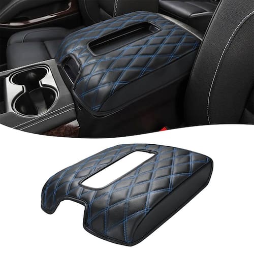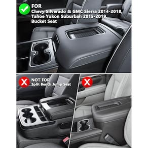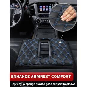 Almofada de console central compatível com Chevy Silverado e GMC Sierra 2014-2018, Tahoe Yukon Suburban 2015-2019, assento concha de console de chão - Capa de console personalizada – Esta almofada de console central de assento bucket atende ao padrão Autêntico que é requintadamente trabalhada, bem compatível com Chevy Silverado, GMC Sierra 1500 2500 3500 2014 2015 2016 2017 2018, Tahoe Yukon Suburban 2015 2016 2017 2018 2019, console de chão com assento concha - Dirija com conforto – Feito de couro de vinil superior e esponja, macio ao toque e fornece um bom suporte para seus cotovelos, você pode sentir os braços relaxados durante a condução - Resistente a arranhões e água – Proteja a tampa do console do meio, envolvendo o compartimento para manter limpo e evitar arranhões de garras ou chaves de animais de estimação - FÁCIL INSTALAÇÃO - Você pode facilmente deslizar a almofada no console sem qualquer ferramenta. Existem 2 faixas elásticas na parte de trás que ajudam a se manter no lugar, sem deslizar para frente e para trás - CONTEÚDO DA EMBALAGEM - 1 x capa de apoio de braço. O console e a tampa ilustrados não estão incluídos