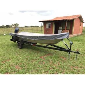 Capa de barco nigth day 4 mts à 6 mts ++ 20 elásticos Indicada para marinas, garagem e transporte Material Confeccionada em material impermeável de alta resistência e qualidade chamado rip stop blackout, com tecnologia especial que não prolonga rasgos. Detalhes Possui acabamento em linha dupla de nylon naútico não deteriora Possui elástico de alta pressão em toda barra Aplicação - capas de barco 4 metros à 6 metros. - largura : até 1,40 metros. - modelo bico fino, semi chata ou chata. - material rip stop blackout nigth day. - cores: prata ou preta. - capa super resistente ao sol e chuva. - capa para uso rodoviário, deve ser todos os elásticos laterais e a elástico de amarração. Barcos semi chata 6 metros 5,5 metros 5 metros Barcos de bico 6 metros 5,5 metros 5 metros Atenção Essas informações são importantes para garantir que a capa ficará nas medidas corretas Caso a lancha possua algum tipo de cobertura fixa, que permaneça sempre/unicamente erguida, será necessário o pagamento de adicional para a adaptação de tamanho da capa