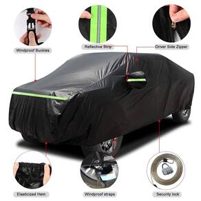 Característica: Material premium: Material durável Feito de tecido de tafetá de poliéster 210T de alta qualidade e trama pesada, com algodão interno mais espesso, durável, não desbota e 100% à prova d'água. O material de tafetá de poliéster será mais fino, o efeito à prova d'água é extremamente forte e o armazenamento é conveniente Zíper de porta dupla para fácil acesso, listras refletivas frontais para evitar arranhões à noite. Substitua para capa de carro Jeep Gladiator 2019 2020 2021 2022 2023 2024 Incluído na embalagem: 1 capa completa para carro 1 bolsa de armazenamento. - Compatível com: Esta capa de carro impermeável para todos os climas serve perfeitamente para Jeep Gladiator (JT), Rubicon, North Edition, Mojave, Altitude/High Altitude, Willys, Texas Trail. Protege totalmente o seu carro como uma garagem móvel - Materiais premium: Feito de 6 camadas Material resistente: 1: O exterior é material macio 210T, pode suportar a exposição ao sol no verão e chuva/neve de inverno 2: O alumínio altamente reflexivo é bom à prova de sol, mantém o carro fresco no dia ensolarado. 3. Parte interna de algodão mais espessa para proteger a pintura do seu carro - Detalhes do design: 1: Com zíper de porta à esquerda para fácil acesso. 2. Faixas à prova de vento na frente e atrás para fixar a capa do seu carro em clima de vento forte. 3. Listras refletivas para lembrar as pessoas à noite. 4. Lindos bolsos espelhados protegem perfeitamente os danos do seu espelho. 5: Bainhas elásticas ajustáveis na parte inferior permitem que você ajuste o tamanho facilmente. 6: Quatro amarrações ajudam você a amarrar a capa em quatro rodas, não se preocupe com soprar em um dia ventoso - Capa de carro para todos os climas: as capas de carro sportuli podem lidar com tudo, não importa o sol quente ou o clima frio. O material resistente mantém seu carro protegido do sol, neve, geada, chuva, granizo, areia, poeira, folhas, galhos e pássaros caindo - Incluído na embalagem: 1 capa de carro, 1 bolsa de armazenamento. Protege totalmente o seu carro como uma garagem móvel. Com a capa de carro eficaz, o bom estado do seu carro durará o maior tempo possível