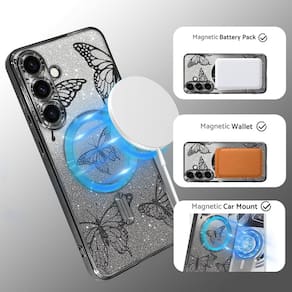 Capa de celular com glitter compatível apenas com Samsung Galaxy S25 Plus. Recortes precisos se encaixam perfeitamente em todas as portas e permitem acessar todas as funções rapidamente. Capa de celular com ímã integrado compatível com vários dispositivos de carregamento sem fio. Fornece proteção total à prova de choque; a borda elevada protege sua tela e câmera de arranhões. - A capa de celular serve apenas para Samsung Galaxy S25 Plus de 6,7 polegadas. Capa de telefone com anel magnético integrado compatível com todos os carregadores sem fio e carteira magnética. - PACOTE: 1 x capa de telefone, 2 x inserção de papel com glitter. O design padrão de dois estilos permite que você mude a aparência do seu telefone. Você também pode obter uma capa de celular transparente com moldura galvanizada ao remover a folha de glitter. - A capa de celular com glitter é feita de TPU macio, não se preocupe com esta capa de celular ficar fora de forma ou rachar. - Recortes precisos se ajustam perfeitamente a todas as portas; botões responsivos permitem acesso fácil. - Fornece proteção total à prova de choque; bordas elevadas evitam que sua tela e câmera arranhem.