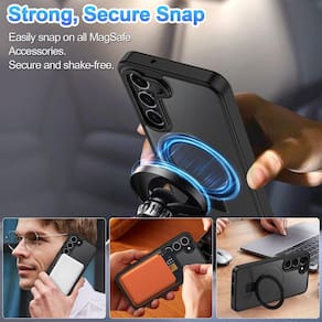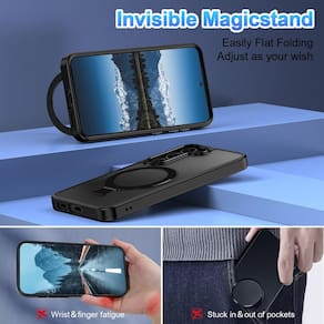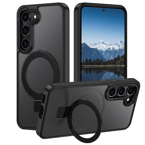 Capa?Suporte magnético invisível?Feito de alumínio de nível aeroespacial, o suporte é prático e multifuncional. Pode ser ajustada entre 40° e 120° para uma experiência de visualização estável e sem usar as mãos, e funciona como um suporte de anel para maior conveniência. Com estilo de vida N+1, pode ser utilizado para assistir TV, trabalhar em reuniões ou conversar por vídeo. - ?Modelos compatíveis? Esta capa fosca translúcida é compatível apenas com Samsung Galaxy S23 Plus, não é compatível com nenhum outro modelo de telefone. - ?Compatível com acessórios MagSafe e carregamento sem fio?Esta capa de telefone com um anel magnético integrado que se alinha perfeitamente com os carregadores MagSafe e outros carregadores com certificação Qi, oferece uma forte experiência de fixação e carregamento sem fio mais rápido. Compatível com todos os acessórios Magsafe, como um carregador magnético, suporte magnético para carro, carteira magnética, carregador magnético, etc. Carregue do seu jeito. - ?Design fosco translúcido?Parte traseira fosca translúcida avançada, restaurando a textura metálica e exibindo o logotipo do seu telefone fracamente, evita que a capa fique suja ou amarele, com uma sensação refrescante e suave. A textura fosca oferece uma melhor aderência. - ?Material premium?Feito de moldura de TPU flexível e parte traseira de policarbonato antiarranhões protege seu telefone contra choques e arranhões sem adicionar volume. - ?Suporte magnético invisível?Feito de alumínio de nível aeroespacial, o suporte é prático e multifuncional. Pode ser ajustada entre 40° e 120° para uma experiência de visualização estável e sem usar as mãos, e funciona como um suporte de anel para maior conveniência. Com estilo de vida N+1, pode ser utilizado para assistir TV, trabalhar em reuniões ou conversar por vídeo.