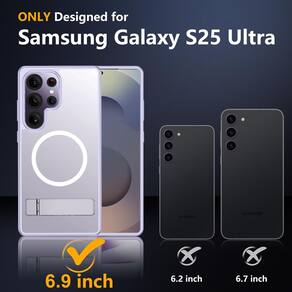 SPIDERCASE Capa magnética para Galaxy S25 Ultra, roxo claro - ?Capa para S25 Ultra?SPIDERCASE projetada para Galaxy S25 Ultra de 6,9 polegadas, não serve para outros modelos, verifique o modelo do seu telefone antes de comprar. O corte preciso do orifício e os botões sensíveis garantem acesso mais fácil a todos os botões e funções. - [Suporte funcional e invisível] O suporte da capa para Galaxy S25 Ultra é dobrável, resistente e construído para durar, com suporte prático integrado feito de alumínio leve e sólido de grau aeroespacial oferecendo uma experiência robusta e flexível no modo retrato, paisagem ou teleconferência. Permite que você obtenha um ângulo de visualização mais confortável. Reduza a frequência de olhar para a tela do telefone para evitar machucar suas costas e pescoço. - [Magnético super forte] Esta capa S25 Ultra possui um anel magnético integrado que se alinha perfeitamente com carregadores magnéticos, esta capa oferece uma fixação mais forte e velocidade de carregamento mais rápida. Compatível com todos os acessórios magnéticos e carregadores sem fio (como carregador sem fio de carro, carregadores sem fio, carteiras magnéticas, etc.). - [À prova de choque de grau militar de 3,5 m] aprovado em testes militares de até 3 m, tem uma parte traseira escovada de policarbonato resistente e amortecedores de borracha flexível que fornecem forte amortecimento para quedas diárias. Airbag poderoso de dispersão de impacto em 360° integrado e tecnologia de canto resistente a impactos de 4 cantos. O design pequeno de bordas de 1,5 mm sobre a câmera e molduras de 1,5 mm sobre a tela evitam poeira e arranhões. - [Design fino e aderência confortável] Esta capa fina para Samsung Galaxy S25 ultra traz maior portabilidade e aderência mais firme, fácil de manter limpa, anti-impressões digitais e traz a sensação excepcional de toque sedoso, sem volume e sem derrapagem para caber facilmente no bolso.