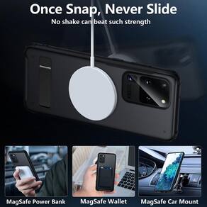 TIANNIUKE Capa magnética para Samsung Galaxy S20 Ultra - 1??Compatível com acessórios MagSafe e carregadores sem fio?: Capa magnética projetada para Samsung Galaxy S20 Ultra. - 2??Carregador sem fio MagSafe se encaixa perfeitamente?Esta capa fina para Galaxy S20 Ultra Magsafe suporta todos os acessórios MagSafe, proporciona absorção automática e alinhamento perfeito para o carregamento mais rápido e estável possível. (NÃO inclui acessórios MagSafe) - 3 ??Um suporte ajustável integrado para suporte em vários ângulos?: É construído com dobradiças de aço de alto carbono para maior durabilidade. Os modos vertical e horizontal flexíveis permitem que você assista confortavelmente a vídeos ou conduza reuniões de negócios. Este suporte pode se misturar em todos os cenários da sua vida. - 4??Proteção contra quedas militar?Capa feita de novos materiais da Alemanha, a parte traseira fosca permanece limpa com um design inteligente de revestimento nano oleofóbico que evita impressões digitais, marcas d'água, óleo e poeira. Boa proteção sem volume, estrutura de ângulo de absorção de impacto projetada para dispersar choques severos. - 5??Proteção de tela e câmera?Design de proteção labial acima da borda da tela e a lacuna da câmera, o que pode impedir que a tela e a lente da câmera entrem em contato diretamente com a área de trabalho, evitando arranhões. - 6??Ajuste perfeito?O design de botão com tudo incluído e recortes precisos permitem fácil acesso a todas as portas e funções, operação sensível. O design de uma peça facilita a instalação e remoção sem passos tediosos.